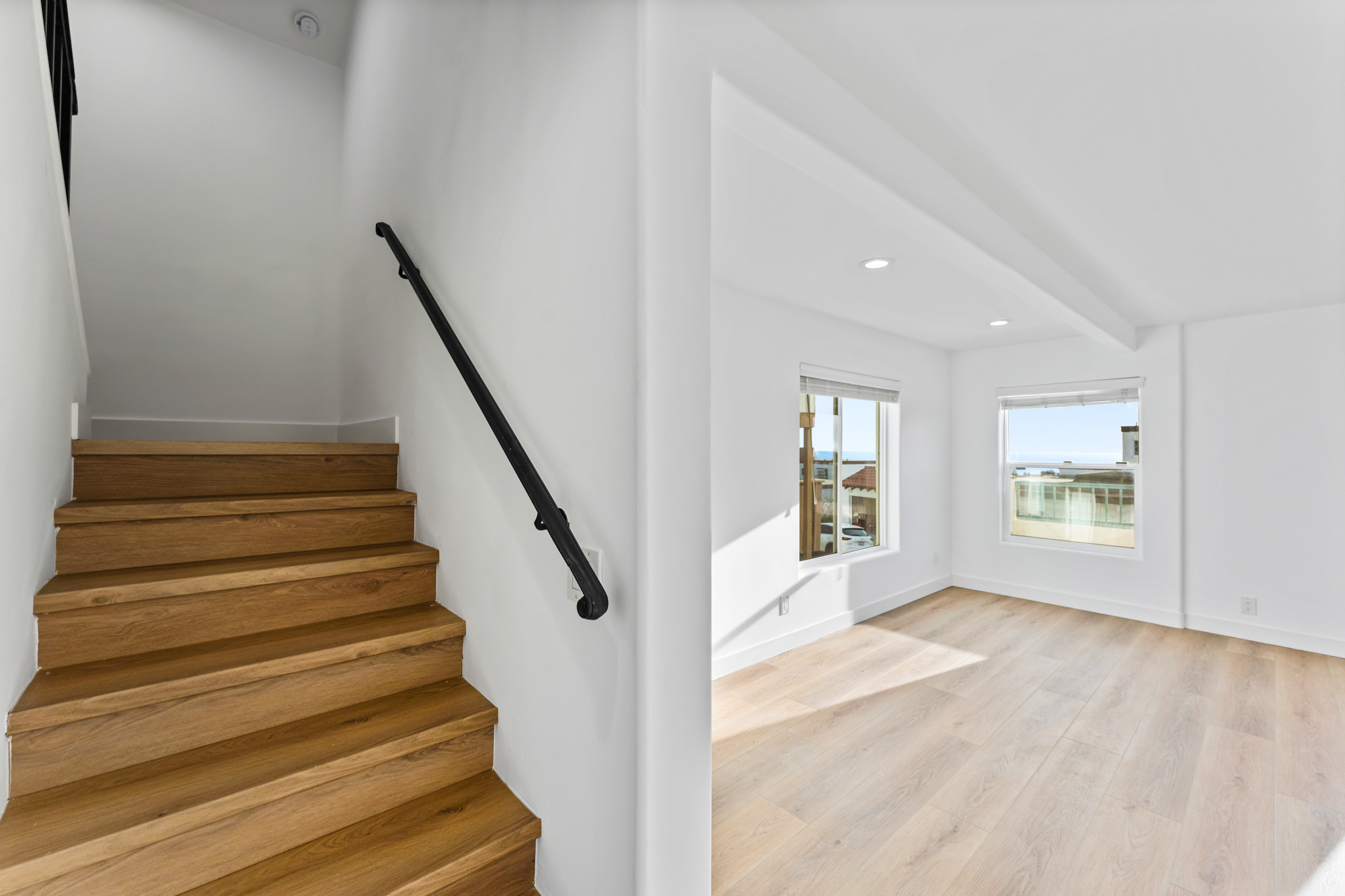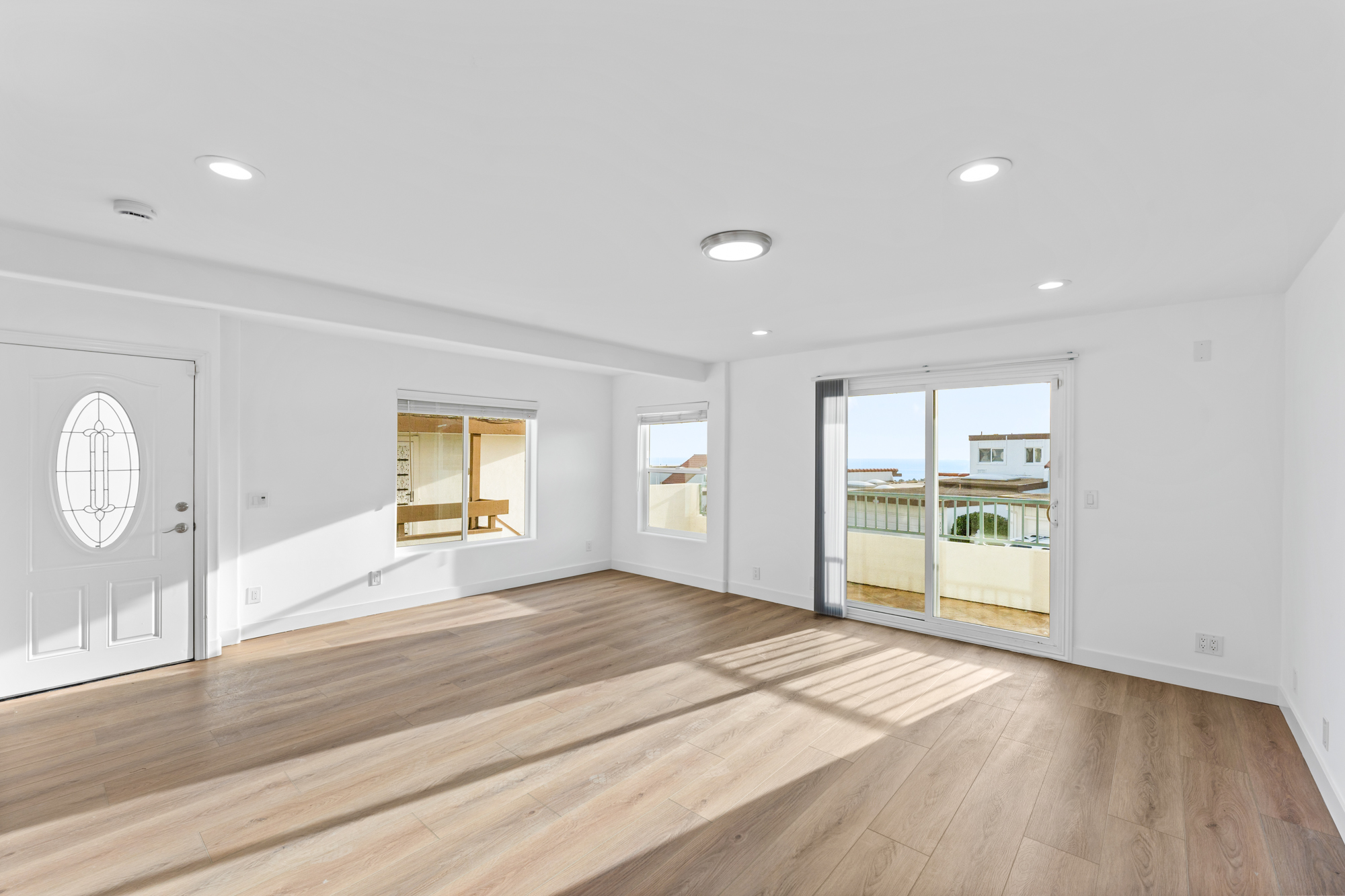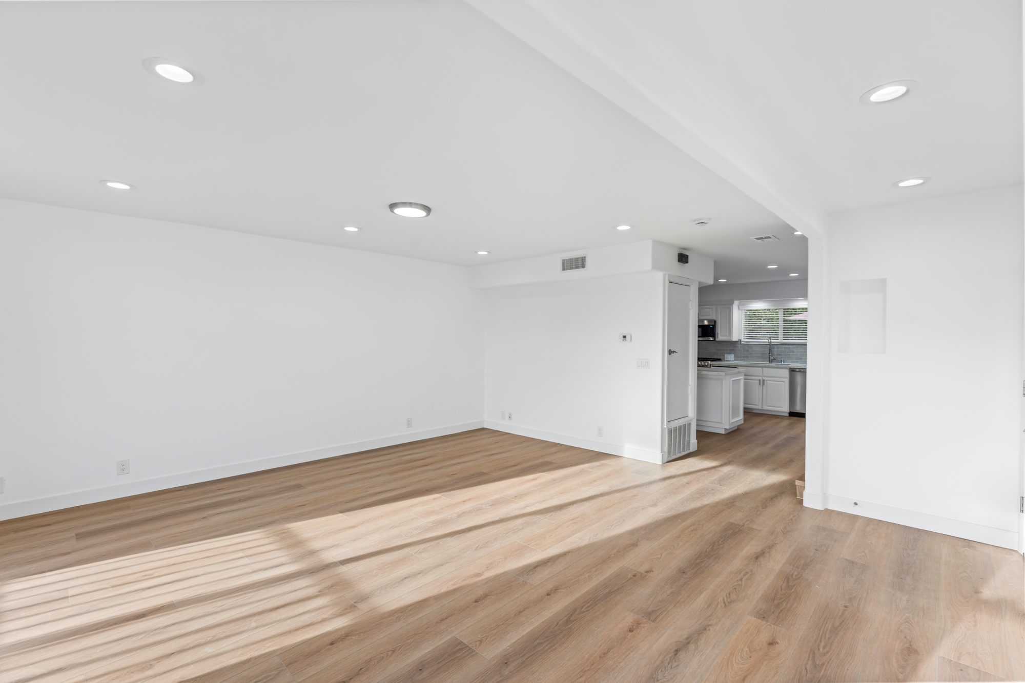 Fresh white walls, new LVP flooring, modern recessed lighting
